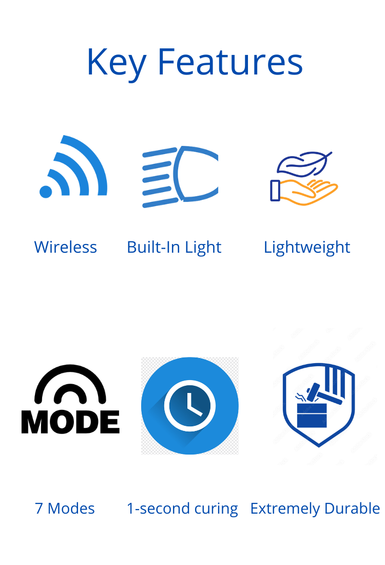 Light intensity up to 3000mw/cm², bringing you full confidence in curing.