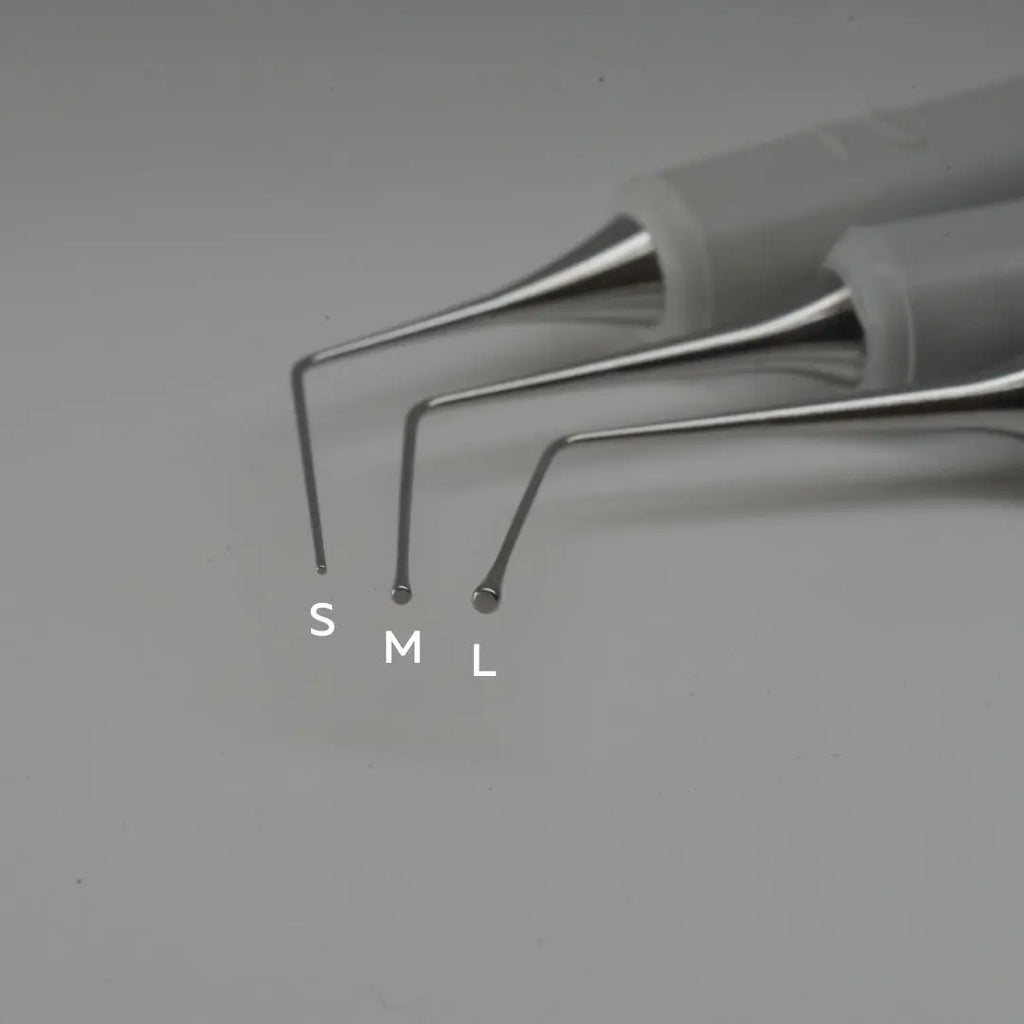 - Prexo L: (blue side) 15 mm, Ø to the tip 1.4 mm / (grey side) 17 mm, Ø to the tip 1.2 mm