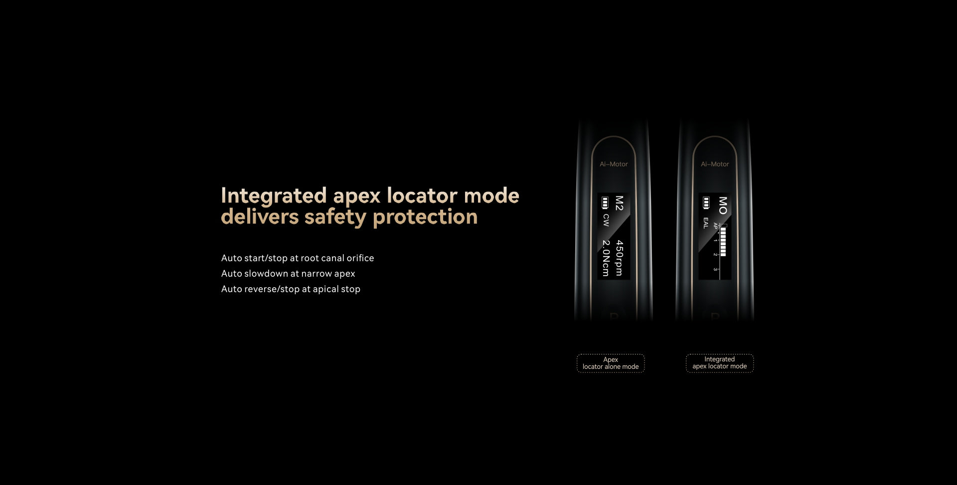 Brushless endo motor with apex locator - Redesigned for experts with built in T-Mode, by Dr. Yoshi Terauchi, and up to 2500RPM speed for retreatment and advanced endo.