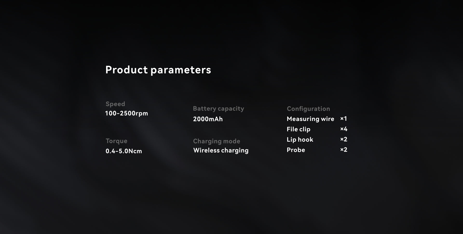 - The speed and torque can be adjusted within the range of 100-2500RPM and 0.4Ncm - 5.0Ncm